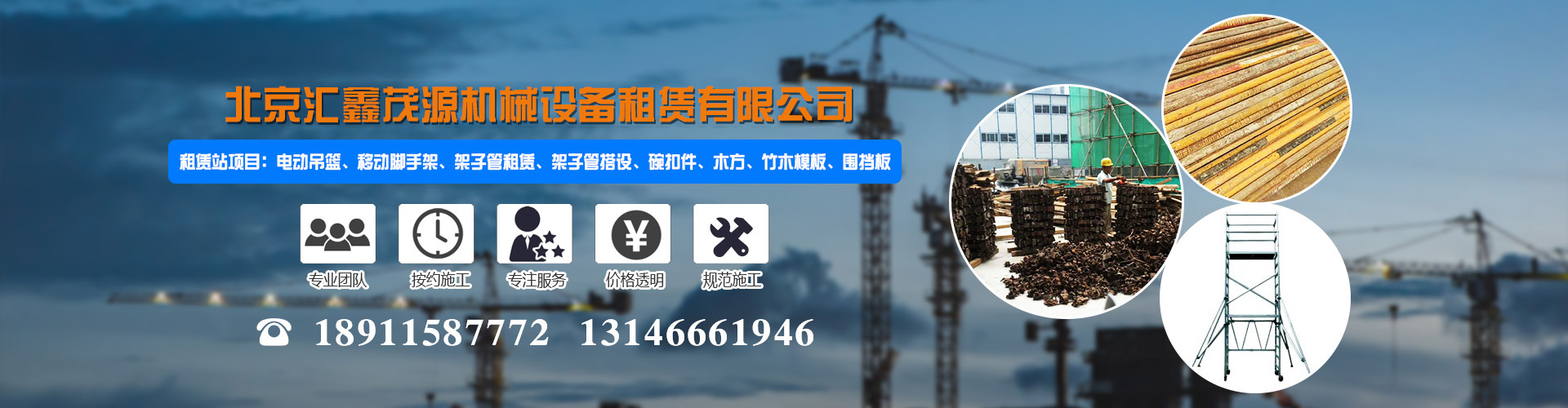 租賃站項目:電動吊籃、移動腳手架、架子管租賃、架子管搭設(shè)、碗扣件、木方、竹木模板、圍擋板。